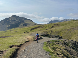 Monday night I slept terribly and don't quite know why: maybe because I knew Tuesday we were going to hike, and there's some anxiety I have about not getting enough sleep and then feeling unwell enough to have to cancel? After a few restless hours of dozing, I woke up feeling thick-throated and sort of coughy but told Brenna I wanted to hike anyway. So we drove about an hour to Skógafoss, the same hike I went on two years earlier after my ice cave excursion, when it was overcast with drizzly, blustering winds. This time around, we got unbelievably perfect weather, so much so that I stripped off two of my layers almost immediately and was almost too hot in my other ones. By the end of it, Bren was wearing a tank top, and I'd forgotten I'd even felt bad that morning.